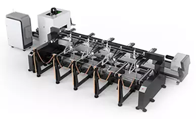 High-efficiency tube laser cutting machine for round, square, and rectangular pipes.
